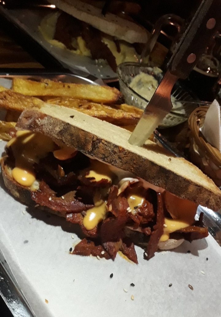 Sisi ($225), un sanwich con fetas de pastrami casero, laminas de papas y cheddar fundido.