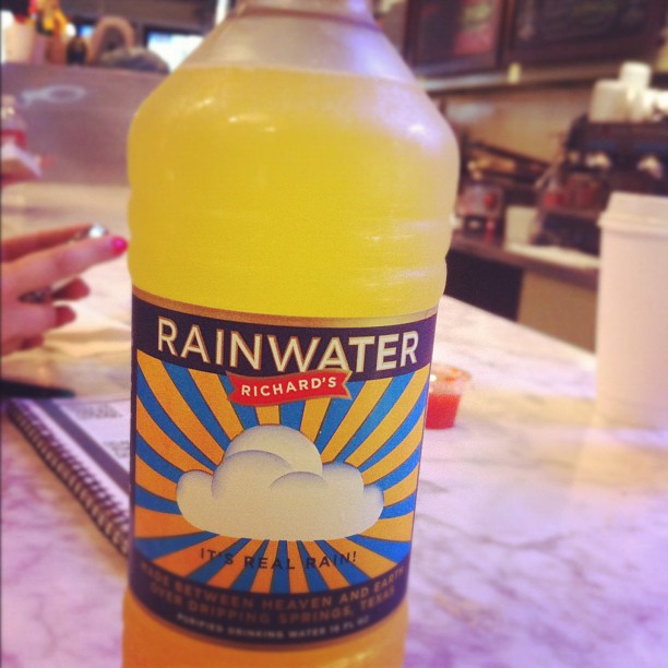 Cuando creíamos que lo habíamos visto todo, Conz se despacha con una foto en Istagram de una rareza que estaba consumiendo en #SXSW: agua de lluvia embotellada.