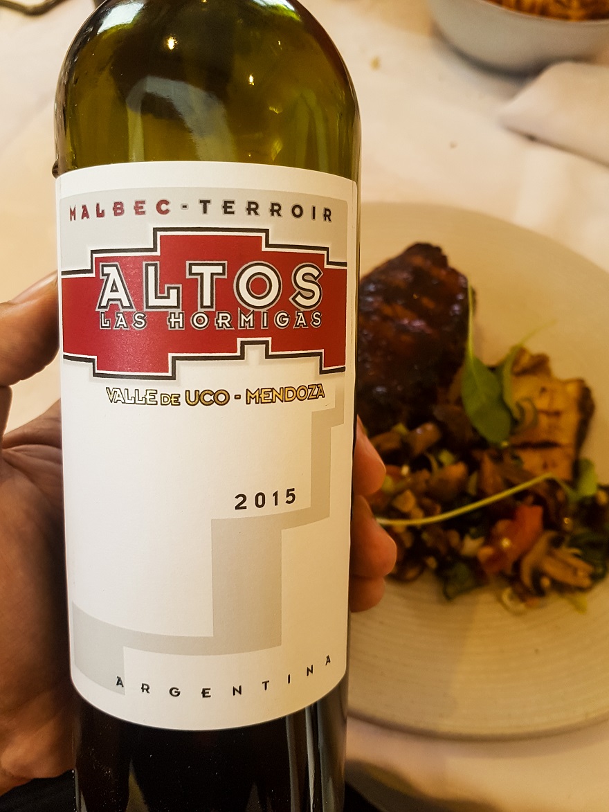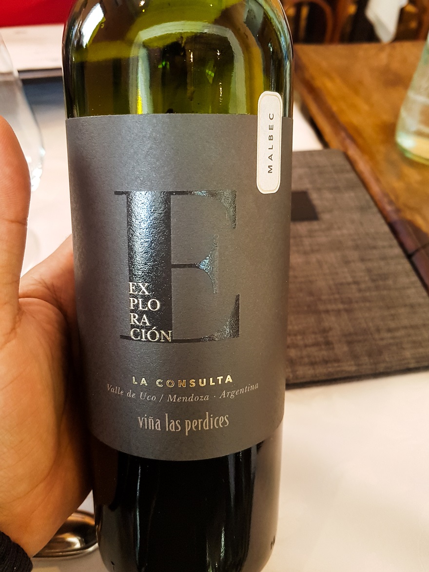 Esta vez pedimos un Exploración malbec de Viñas Las Perdices para las entradas y Malbec Terroir de Altos Las Hormigas ($750) para el entrecot ya que es un vino con mayor complejidad y madera que el anterior. Luego para los postres volvimos a pedir un Viñas las Perdices.