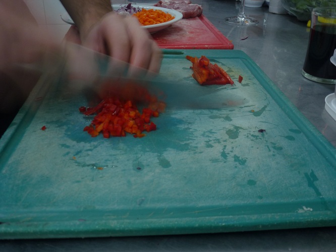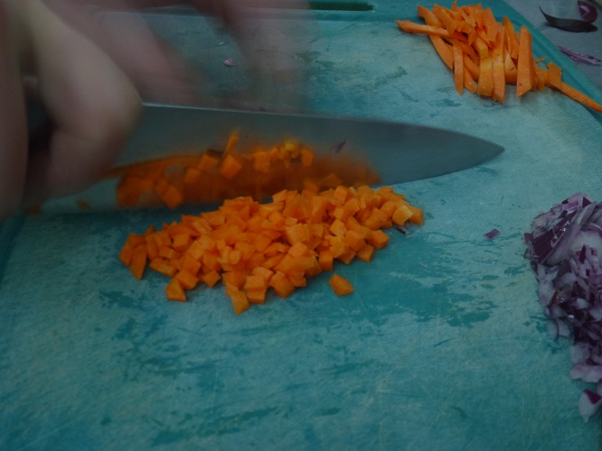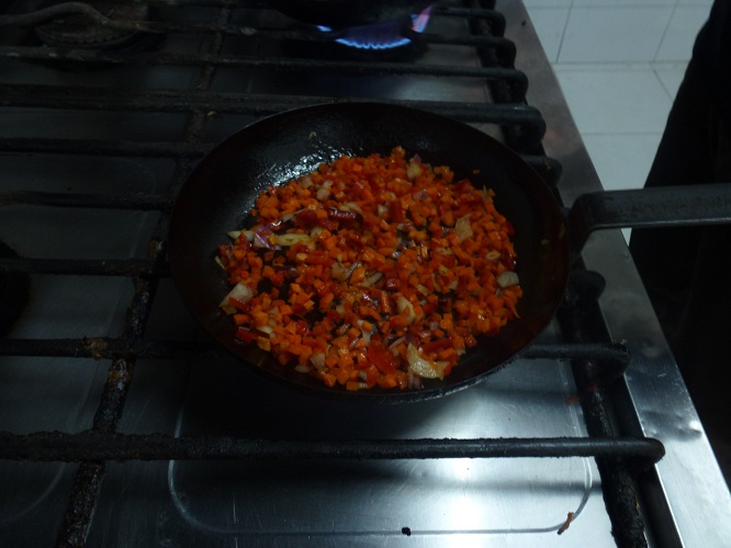 … comenzando por las zanahorias, la cebolla y seguiemos por el morrón…
