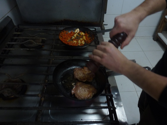 Por una cuestión práctica voy a mostrar primero el risotto y luego la bondiola pero vale aclarar que Martín lo fue cocinando en paralelo y sin cesar la carla. Ni el vino.