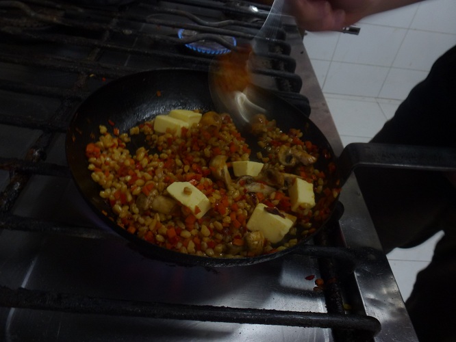 …y por último la manteca cortada en dados y queso parmesano rallado. Reservar fuera de la hornalla.