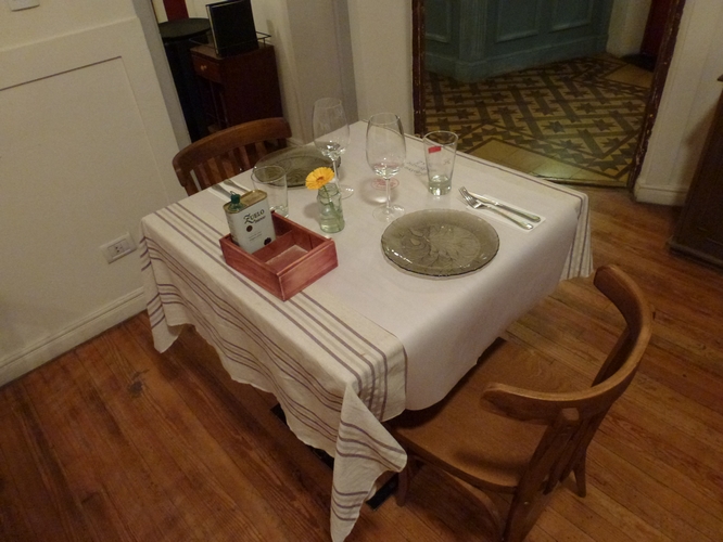 El restaurante es una fonda, tal como su nombre lo indica, pero tiene cuidado hasta el último detalle. Ese día lo comentaba vía Twitter, es como el de Palermo que se peina para parecer despeinado y gasta los jeans Levi’s para simular gastados. Al punto que cuando llegó Pablo y saludó a mi mesa preguntó si nos había gustado «el concepto». No preguntó si comimos bien, si la porción era abundante o si nos atendieron bien, nada de eso… el foco es el concepto. Y debo confesar que si, sabrán disculpar el spoiler.