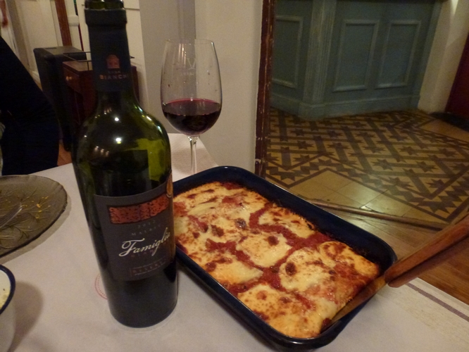 El principal llegó vía Twitter «Canelones de espinaca y ricota con salsa de tomate, gratinados» ($195) acompañado de un Famiglia Bianchi Reserva Malbec 2012 gentileza de Male Abbihagle. Los canelones estuvieron muy bien en termino de sabores y tremendos si hablamos de porciones, al punto de que no pudimos terminarlos. Sobre el vino… mejor lean ustedes: El mejor vino tinto del mundo es argentino.