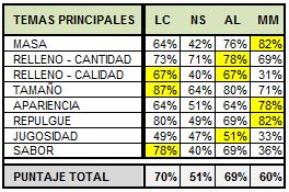En la contienda sobre empanadas salteñas se evaluó la masa, cantidad y calidad del relleno, tamaño, apariencia, repulgue, cantidad de jugo y finalmente el sabor de cada bocadillo. Cada indicador tuvo su ponderación en función a la importancia que tiene respecto del resultado final. En esta ocasión se optó por la modalidad delivery y el precio de las empanadas salteñas evaluadas se encuentra en el rango de los $90 a $100.