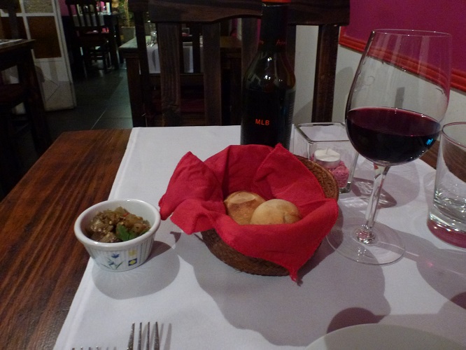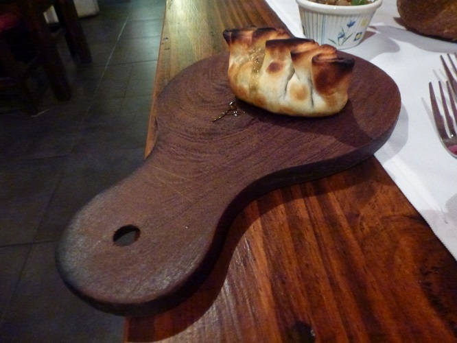 Llegué al Ceibo Restaurante pasadas las 21hs. sin reserva previa como lo hago en general, pedí un lugar y me dispuse a vivir esta nueva experiencia. Si bien estaba muy cansado por el largo trajín del día laboral, no contaba con mucho apetito pero al ver que en la carta ofrecían Empanadas de ossobuco al Malbec ($25) supe que debía pedirlas o no me lo perdonaría. Ordené una empanada, una botella de 375cc. de vino mablec de Bodega Renacer($35) y continué leyendo la carta buscando el plato principal. El plato fuerte de la noche resultó ser Pastel de chivo al limón con puré de papas perfumado con ajo al rescoldo ($180). Hasta aquí todo venía performando por sobre las expectativas.