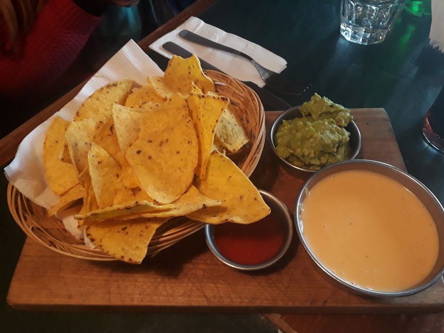 Por ser horario de merienda arrancamos con unos nachos con cheddar, guacamole y picante ($205) para amenizar las cervezas.