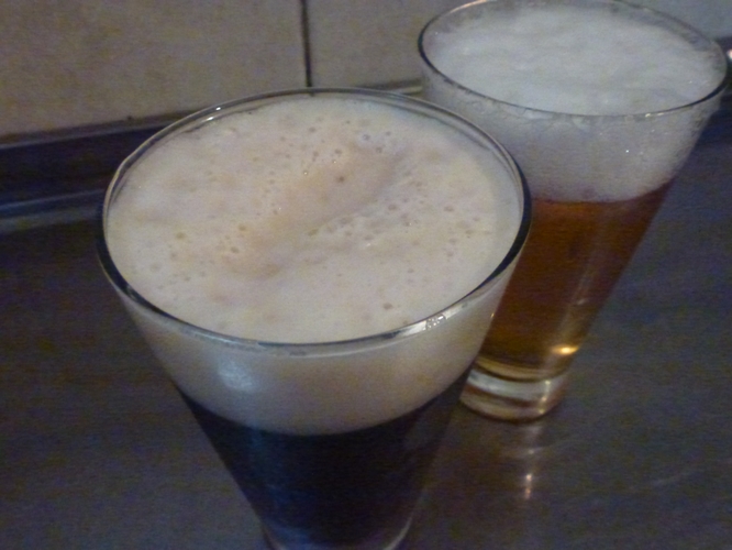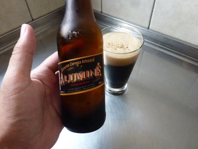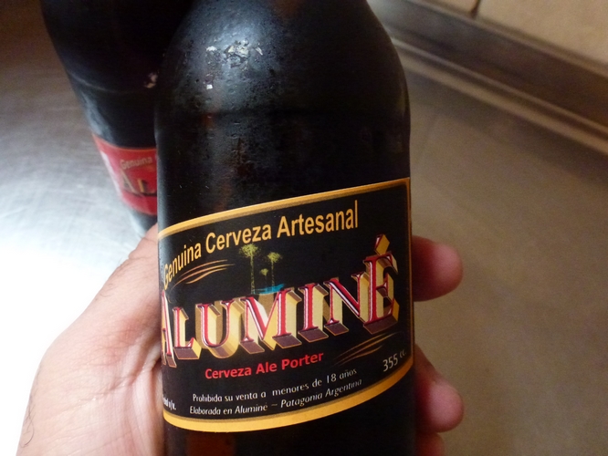 En este momento se fabrican tres tipos de Cerveza Aluminé pero yo solo pude probar dos, la Porter, negras de 5,5%, y la Scottish, una cerveza roja de 6,5%. Ambas cervezas me parecieron muy buenas, de buen cuerpo y una espuma que se mantiene firme en el vaso frente al paso del tiempo. Para probar esto me tomé el atrevimiento de servir un vaso de una cerveza mainstream y compararla contra la Scottish, los resultados están a la vista. Mientras la Aluminé fue la primera que servi, le saqué fotografías y luego recién destapé y servi la mainstream, al momento de fotografiar ambas la artesanal siguen siendo la que presenta una espuma más firme.
