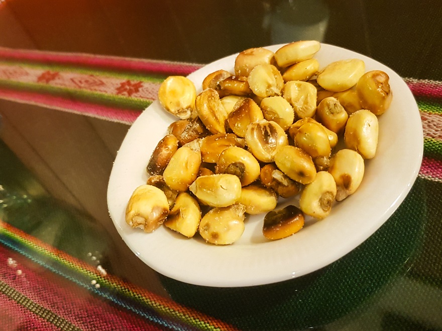 Al sentarme y pedir una cerveza Heineken ($190) el mozo no tardó en hacer llegar a la mesa un plato con canchitas (maíz tostado que se come como snacks) para acompañarla mientras leía la carta.