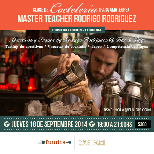La clase estará a cargo de Rodrigo Rodriguez e incluirá un tasting de aperitivos, una masterclass de 5 cocktails (clásicos y nuevos), el arte del garnish y la posibilidad de que cada alumno pase detrás de la barra a preparar los cocktails aprendidos.