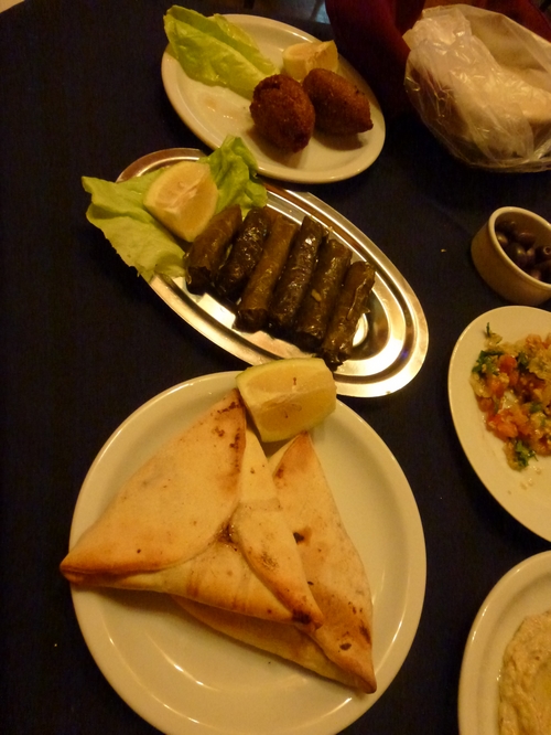 El recorrido por la carta se completó con Boyos de acelga ($8), Emapanadas de queso ($8) y Shish Barak que, según explica la carta misma carta, son tipo sorrentinos de carne, cilandro, con salsa caliente a base de yogur natural ($50) y estuvieron realmente bien. La cerveza Heineken de 970cc. cuesta $35 y la Coca Cola de 330cc. cuesta $8.