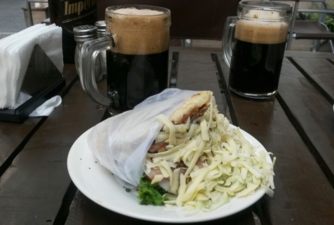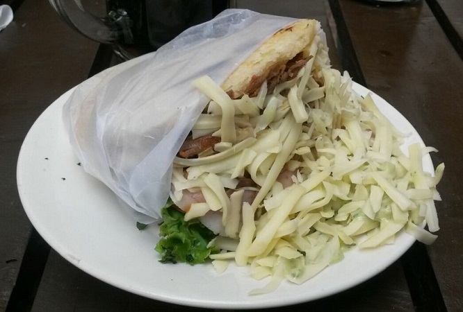 Por ser la primer visita pedi Arepas de la casa ($85) que contiene pollo, jamón, doble queso, vegetales, y salsa de la casa. Además probé Arepa Pabellón ($75) que incluye vacío desmechado, caraotas (porotos negros) y queso fresco. Ambas muy buenas y al menos en mi opinión con una arepa alcanza para saciar el hambre. Lo acompañamos con una cerveza Imperial Stout que no recuerdo el precio porque no figuraba en carta pero estuvo en el orden de los $70.