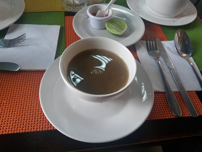 Como en cada viaje siempre trato de comer lo mismo que los lugareños, así fue que caminamos hasta encontrar un restaurante que nos parezca atractivo. Allí pedimos el Menú ejecutivo ($10000 colombianos, es decir unos US$3,50).