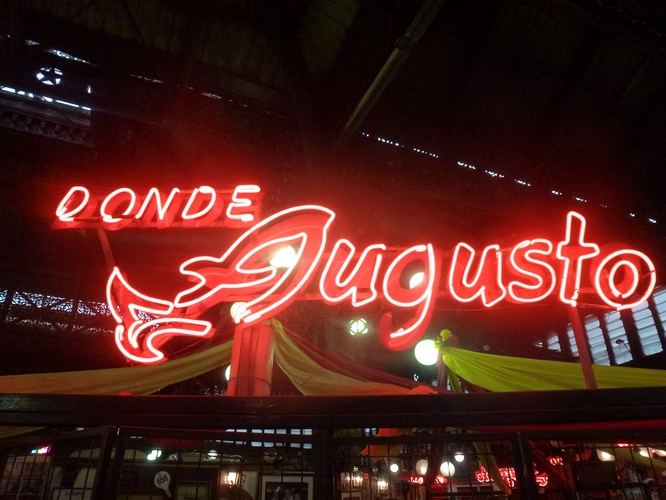 Llegué al Mercado Central con mucho frío, recorrí los pasillos, leí los atriles con sugerencias y me ubiqué en una mesa vacía para disfrutar de las delicias que ofrecen. El restaurante en el que almorcé se llama Donde Augusto y es una marisquería, por lo que entiendo, bastante conocida en Chile.