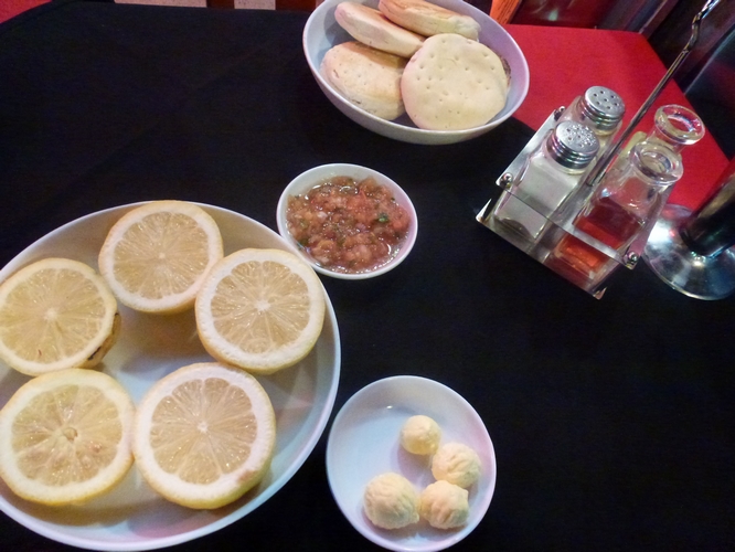 Rápidamente me trajeron la carta y un appetizer compuesto de pebre, manteca, limón y unos deliciosos pancitos calientes que vinieron muy bien para acortar la espera.