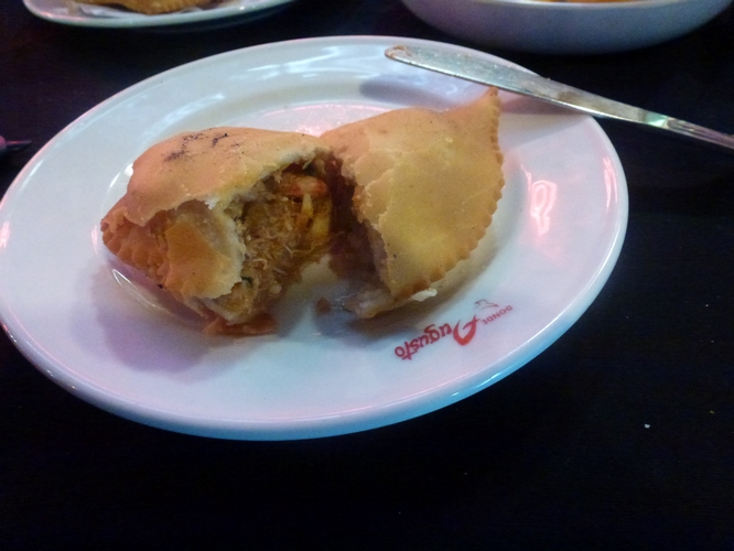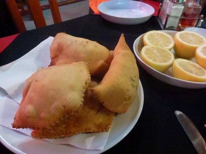 Las empanadas que sirven en Chile no son necesariamente como las conocemos en Argentina sino que son de un tamaño un tanto superior, fritas y en esta ocasión venían rellenas de: