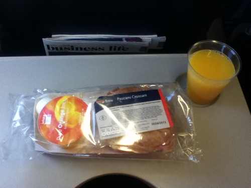 Sabiendo de ante mano que las revelaciones gastronómicas del viaje no vendrían de la mano de los comisarios de abordo, decidí tomar fotografías de cada bocadillo que me sirvieron para contarlo en el blog. Vayamos por parte: