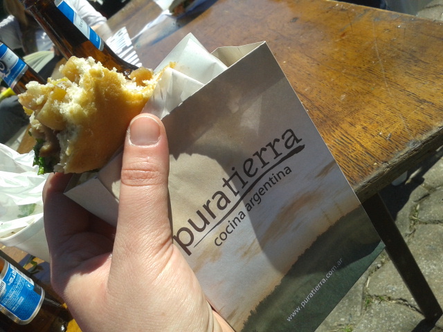 La siguiente parada fue Puratierra, donde probamos un sándwich de bondiola en pan de grasa, rúcula, chutney, mostaza en grano y pera asada que resultó, a nuestro humilde parecer, el mejor plato de los que probamos. Los sabores, todos “importantes”, se mezclaban en una perfecta armonía.