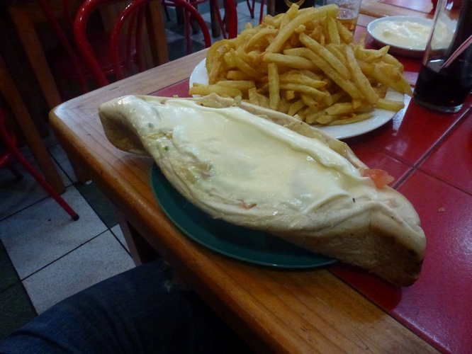 Durante el mes de agosto mientras paseaban por Viña del mar mi acompañante quiso probar «barros luco«. Todavía faltaba una hora hasta el horario de regreso a Santiago, por lo que buscamos un sucucho cercano a la terminal de ómnibus y a comer.