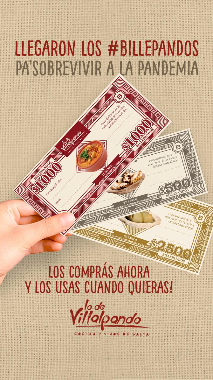 Para paliar esta crisis es necesario sin dudas ejercitar la creatividad y aguantar. Así es que la casa de comidas regionales Lo de Villalpando se suma a la modalidad de compra anticipada mediante los Billepandos.