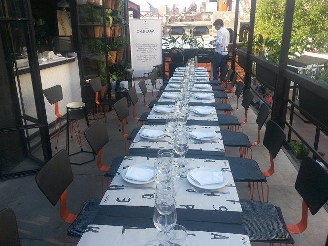La degustación de Caelum tuvo lugar el viernes 11 de marzo en la terraza de Gordó restoran y contó con la presencia de Hernán Pimentel, miembro de la familia propietaria de la bodega, quién entre acordes de guitarra y bocadillos nos brindó un pantallazo de la historia, presente y futuro de la bodega al tiempo que fuimos probando algunas de las etiquetas que desarrollan en Luján de Cuyo.