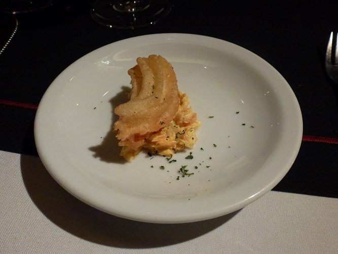 - Churros salados de langostinos y langostinos salteados,