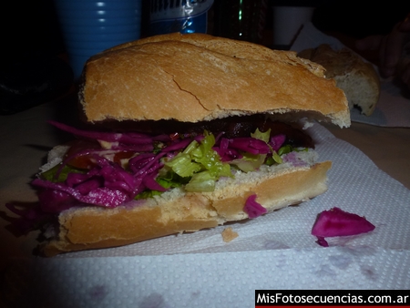 Avanzada la peña con artistas que iban y venían, a sabiendas de que un puesto de Luisito funcionaba dentro del predio no tuve otra opción que entregarme a la gula y ordenar un «chori completo«. Muy bueno también aunque un tanto frío y ya se comenzaba a notar la ausencia de algunos aderezos.