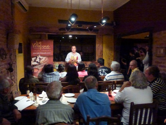 En el local de Lo de Villalpando ubicado en la Ruta 20 nos esperaba toda la hospitalidad a la que nos tiene acostumbrado Gustavo y equipo, quienes entre cervezas y risas nos empaparon de cultura salteña. Allí fuimos aprendiendo paso a paso como hacer las verdaderas empanadas salteñas y tomando nota de los tips de la abuela que compartía sin guardarse nada, respondiendo todas las inquietudes y abriendo el juego a los asistentes para que hagan las veces de ayudantes. Una verdadera fiesta gastronómica a la que todos estabamos invitados a ser parte.