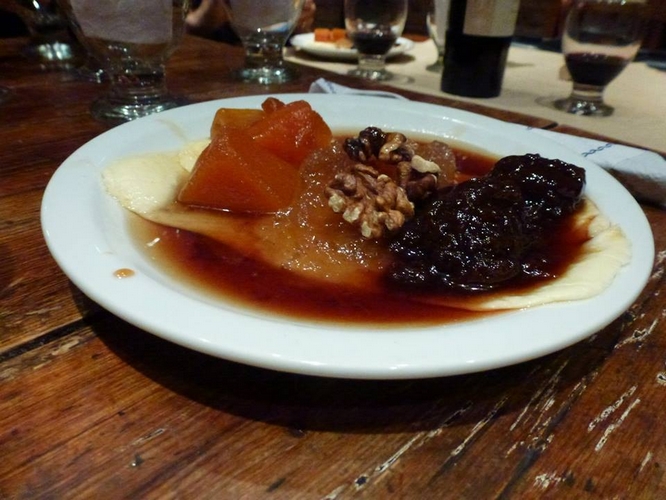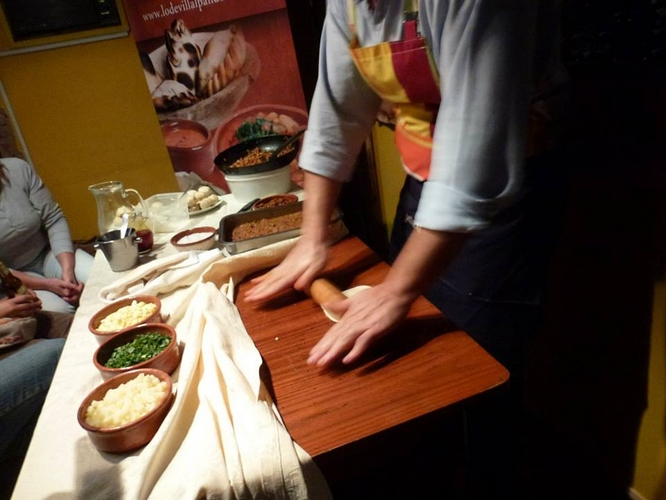 La clase teminó con la degustación de las empanadas que habíamos realizado entre todos. Pero como siempre pasa en estos casos, un grupito de aguantadores o «peregrinos del morfi» como nos llama el dueño de casa nos quedamos en ronda a compartir algunos platos más. Por la mesa desfilaron más empanadas, humita, cazuelas, postres, cervezas, vinos, bombos, coplas, anécdotas, carcajadas y hasta una invitación a conocer la cava que está en proceso de armado. [Si me permiten, prefiero no hacer más comentarios acerca del pedazo de cava que están armando porque considero que merece todo un capítulo aparte.]