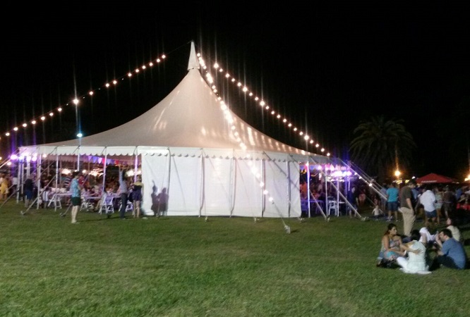 Unos quince carros de expendio de comidas y bebidas se apostaron en el parque del Sierras Hotel rodeando una enorme carpa que albergaba mesas y sillas donde poder descansar y probar los platos. Un escenario a un costado presentaba algo, no se muy bien que porque no me acerqué pero entiendo que alguien cantó blues, jazz o algo de eso y luego no se muy bien qué. Más allá unos baños químicos y algunos cestos de basura. Para el otro lado, mucho parque verde donde tirarse a descansar entre bocadillo y bocadillo. Allí estuve, en el parque descansando entre bocados.