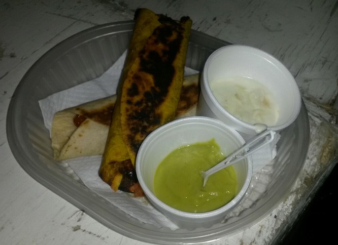 En mi visita probé burritos con salsa guacamole y queso ácido (agrio o algo así, no recuerdo) de Chinga tu madre ($80), empanada de matambre cortada a cuchillo ($20) y bondiolita con hongos silvestres ($80) de Raiz Restaurante y Chapatis ($80) de El Singular. Muy buenos todos, principalmente Chapatis que no llegué a preguntar que era como incitaba el cartel y la bondiolita. Además, en el predio estaban las hamburguesas de Black Pan de la que ya hablé en otro momento y otros jugos y rarezas que me han contado que estuvieron muy bien también. También puede comprarse cerveza artesanal, cockteles de un bar reconocido de barrio Güemes y otras cositas que terminan redondeando una muy buena propuesta gastronómica.