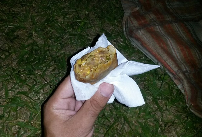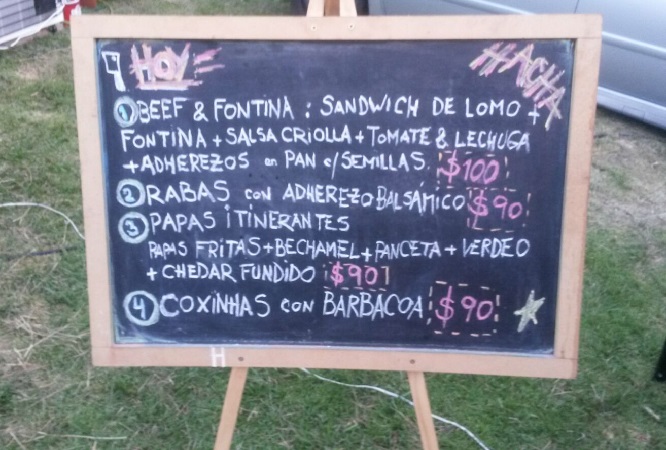Unos quince carros de expendio de comidas y bebidas se apostaron en el parque del Sierras Hotel rodeando una enorme carpa que albergaba mesas y sillas donde poder descansar y probar los platos. Un escenario a un costado presentaba algo, no se muy bien que porque no me acerqué pero entiendo que alguien cantó blues, jazz o algo de eso y luego no se muy bien qué. Más allá unos baños químicos y algunos cestos de basura. Para el otro lado, mucho parque verde donde tirarse a descansar entre bocadillo y bocadillo. Allí estuve, en el parque descansando entre bocados.