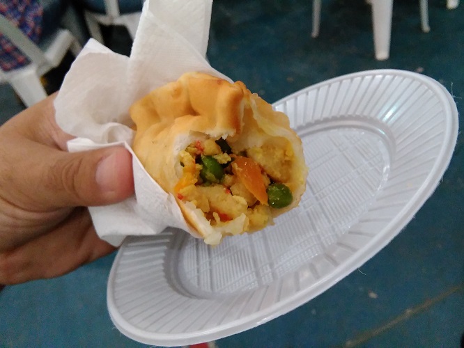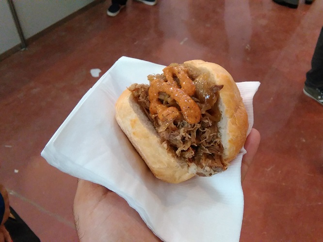 Lo primero fue un sandwich de ternera braseada con cebollas caramelizada y barbacoa casera (40$) en el puesto de Herencia que fue la gloria y a un precio irrisorio. Luego pedí en el stand de Nuevo Achaval una empanada de pacú frita, bien sequita y cargada con verduras frescas. También muy buena y a precio conveniente, $20 cada empanada.