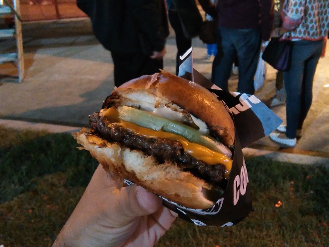 Ya terminando la jornada fui a recorrer el patio cuando vi que Black Pan, hoy por hoy el food truck de moda, estaba casi vacío por lo que no tuve más remedio que ir a comer una hamburguesa. Black Pan es parte fundamental de la asociación cordobesa de food truck por lo que está presente en casi todos los festivales pero con una demanda tal que hace inviable comer una hamburguesa de ellos, por lo que tenía que aprovechar y darme el gusto. Pedí la hamburguesa Miss America ($80, las papas fritas se pagan aparte) con 120grs de carne, salsa, doble queso cheddar, cebollas grilladas, lechuga y tomate, buenísima como ya lo comenté en otra oportunidad.