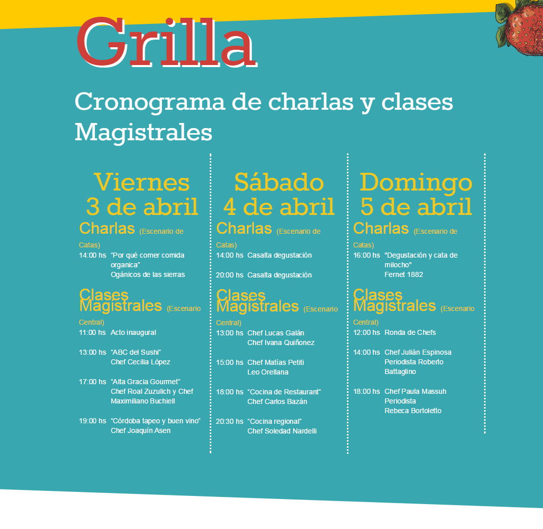 El Festival gastronómico se llevará a cabo en el Polideportivo Municipal del Alta Gracia y estiman convocar a más de 50 stands que comercializarán productos, chef de la talla de Paula Massuh, Lucas Galán, Soledad Nardelli y periodistas como Rebeca Bortoletto y Roberto Battaglino también se harán presente.