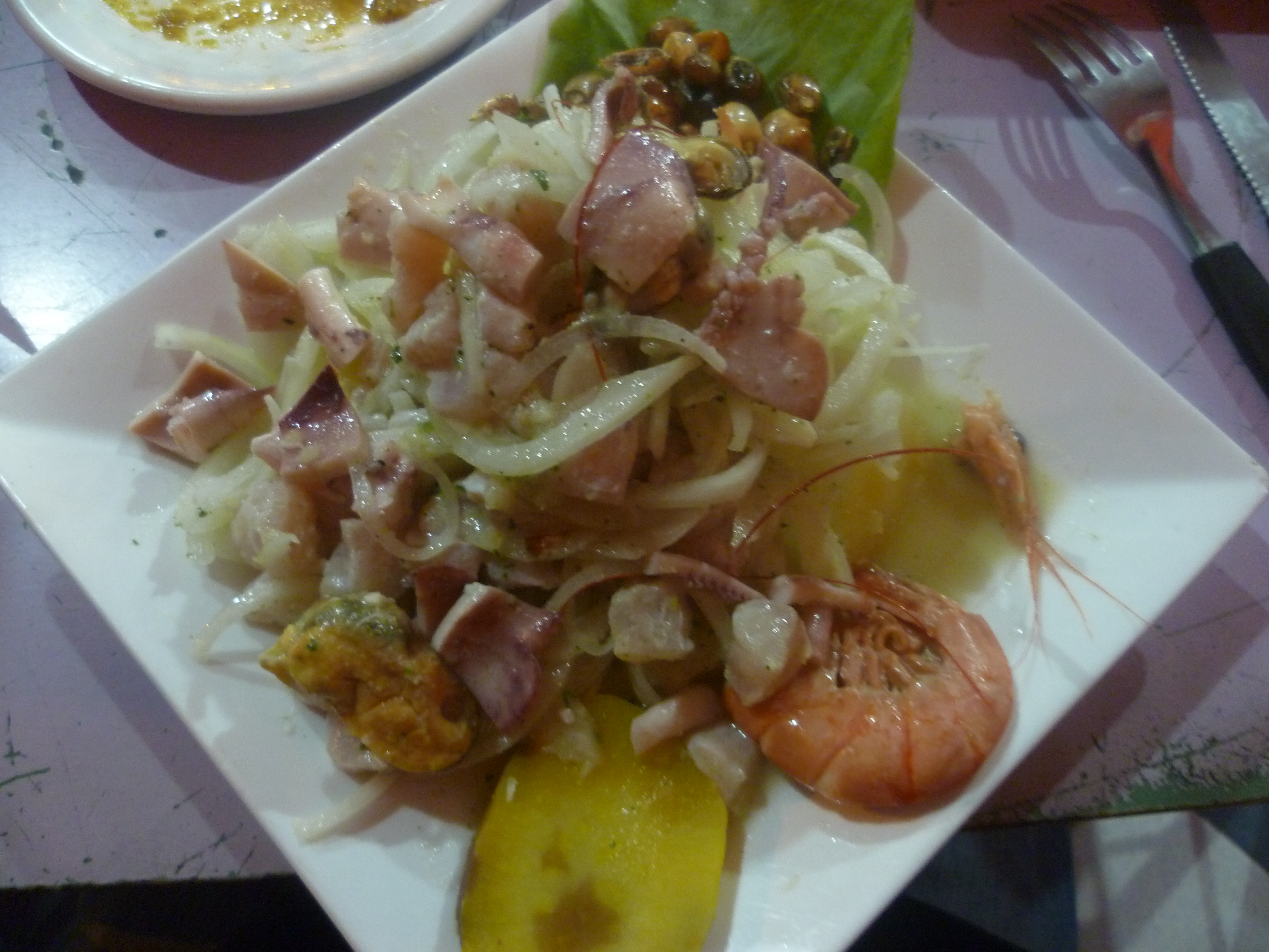 La carta del lugar incluye platos típicos de la gastronomía argentina pero repasa lo mas significativo de la peruana. Allí encontramos diversos cebiches, parihuela, variedades de chicharrones y chicha, solo por citar algunos ejemplos. Como la recomendación me llegó por el lado del cebiche, fue eso lo que ordené.