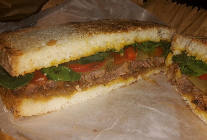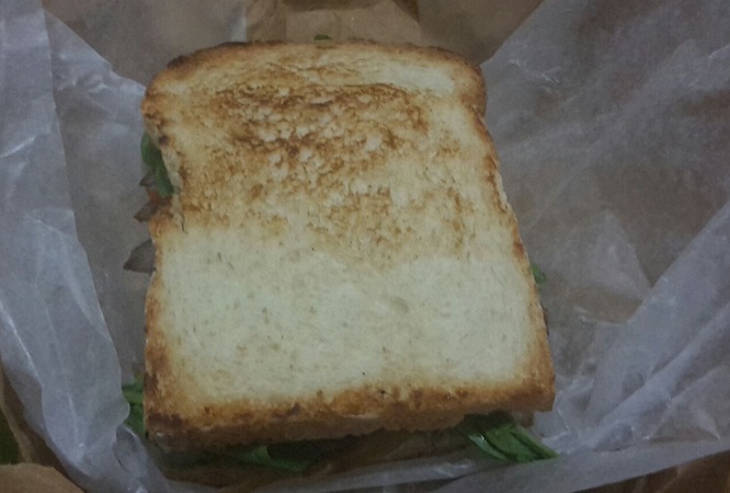 Pasando por alto el detalle anterior, el Pastrami compuesto por pastrón con morrones y cebollas asadas, mostaza ahumada, hojas de rúcula y pepinillos en pan de molde es más que digno y por supuesto que lo recomiendo. Respecto del lugar en general repito que me parece que la oferta está muy bien lograda, la atención es muy buena y los precios razonables.
