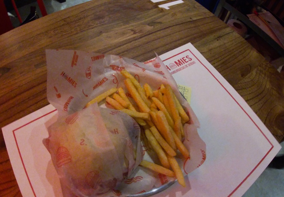 Podes elegir con un medallón de 100grs, con dos, tres o cuatro y agregarle hasta nueve toppings (tomate, lechuga, chile, pepinillo, champignon, salsa homies, cebolla morada y cebolla caramelizada). El pan de papa es realmente liviano y sabroso y las papas son McCain por lo que no hay sorpresas por ese lado.