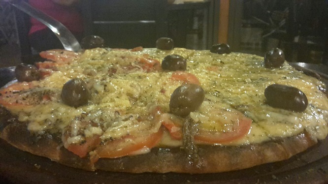 Para ir a lo seguro pedí media pizza a la romana con provolone ($69) y media 4 quesos ($69), una cerveza Budweiser ($64) y un agua saborizada ($24). La pizza está buena (un tanto quemadita por partes pero nada alarmante), de tamaño generoso y a un precio correcto. No entré a los sanitarios y al pagar olvidé consultar si aceptan tarjetas.
