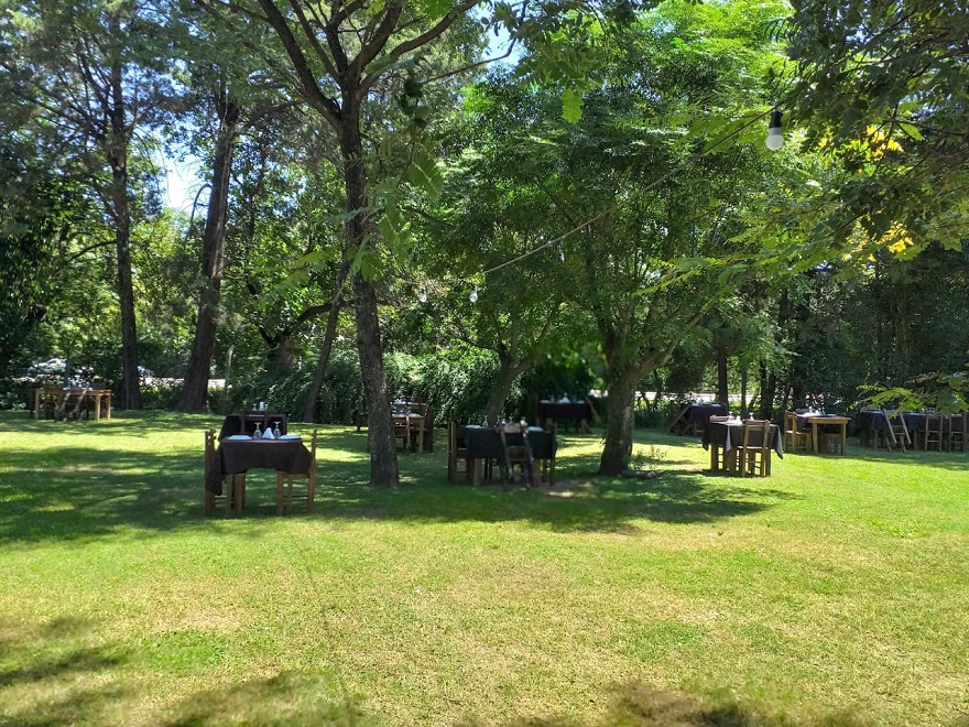 Funciona en lo que parece ser una vieja casona con un predio increíble que invita a una larga sobremesa. Las mesas están dispuestas en un parque verde bajo la sombra de árboles junto a una pileta que no tiene permitido el ingreso pero que adorna la escena.