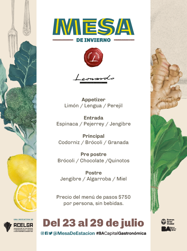 Del 23 al 29 de julio se llevará a cabo la edición número 13 de ciclo M.E.S.A. de Estación que promueve el consumo de productos locales. Para esta edición escogieron como material prima central para la elaboración de platos al brócoli, jengibre, limón y espinaca como representantes del invierno.