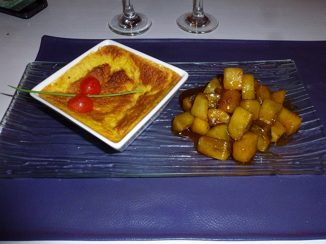 Una vez apostados en nuestra mesa el chef sirvió unas Tortillas de lechuga y espinaca con crema de berenjenas para ponernos en clima mientras definíamos el menú de la noche. Acto seguido llegó la entrada, Mollejas al verdeo con hojas verdes ($90) y ahora si la cena ya estaba en marcha. El principal en mi caso fue un clásico de Ma Cuisine según explicó Roberto Boujon: Souflé de calabaza ($74), esta vez acompañado por con batatas glacé. Una vez terminada la cena el chef volvió a la mesa para comentar que entre las opciones de postre tenía Crème brûlée ($58), que no podíamos dejar de probar. Así fue que seguimos la recomendación y de esta manera pusimos broche final a una cena que sin dudas es para recomendar.