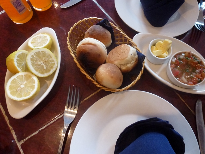 Como ya era una costumbre, primero llegó el pebre con limón y manteca para untar en pan caliente.