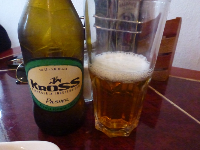 Para acompañar el almuerzo pedí una cerveza Kross Pilsner. Esta cerveza es elaborada por una cervecería independiente, es decir, no pertenece al grupo CCU como la mayoría de las que encontramos en el mercado.