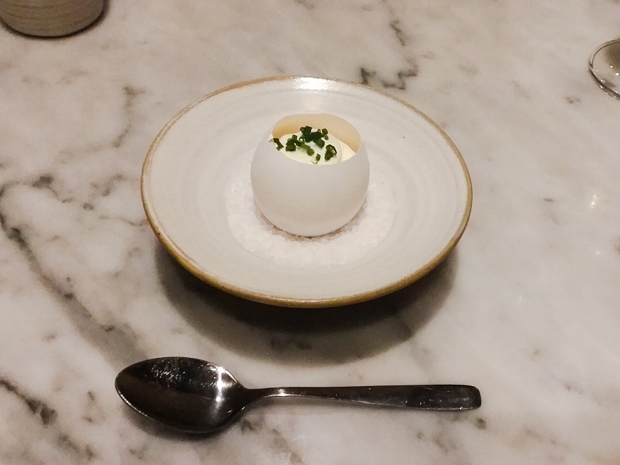 Huevo cocido a baja temperatura con arrope de chañar y crema ácida