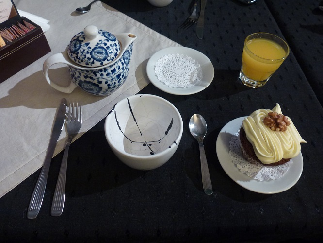 Pasando por alto que el tamaño de mi cupcake no llegaba a ser la mitad del resto de las porciones, la merienda estuvo muy bien en todo sentido. Tanto la calidez del lugar, la excelente (y repito, excelente) atención como pocas veces vi en Córdoba como la calidad de lo que se consumió hizo que la experiencia sea tan buena que no daba ganas de terminar la merienda. Tal es así que nos demoramos tanto que en un momento la gente del lugar se acercó a ofrecer de gentileza algunos té para que degustemos en grupo a modo de gentileza.