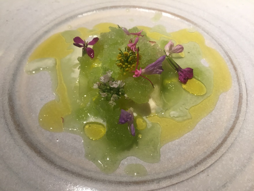 - El equilibrio entre la granita de melón y el aceite de oliva más la burrata;