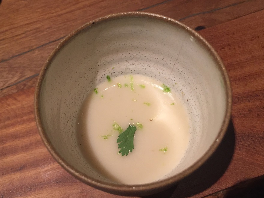 - Fiambre de pulmón de cabrito y sopa Thai de cabrito. La sopa fue otro de los punto altos de la cena, exquisita e intensa pero nos volvió a agarrar con las copas vacías. Si mal no recuerdo a esta altura ya no quedaba ni agua en los vasos, ya ni pido vino.