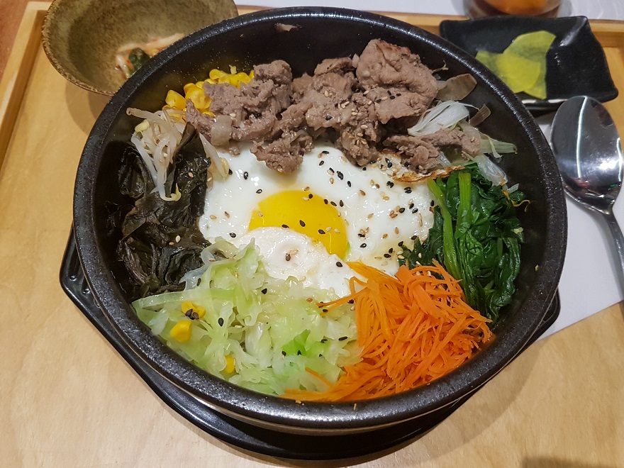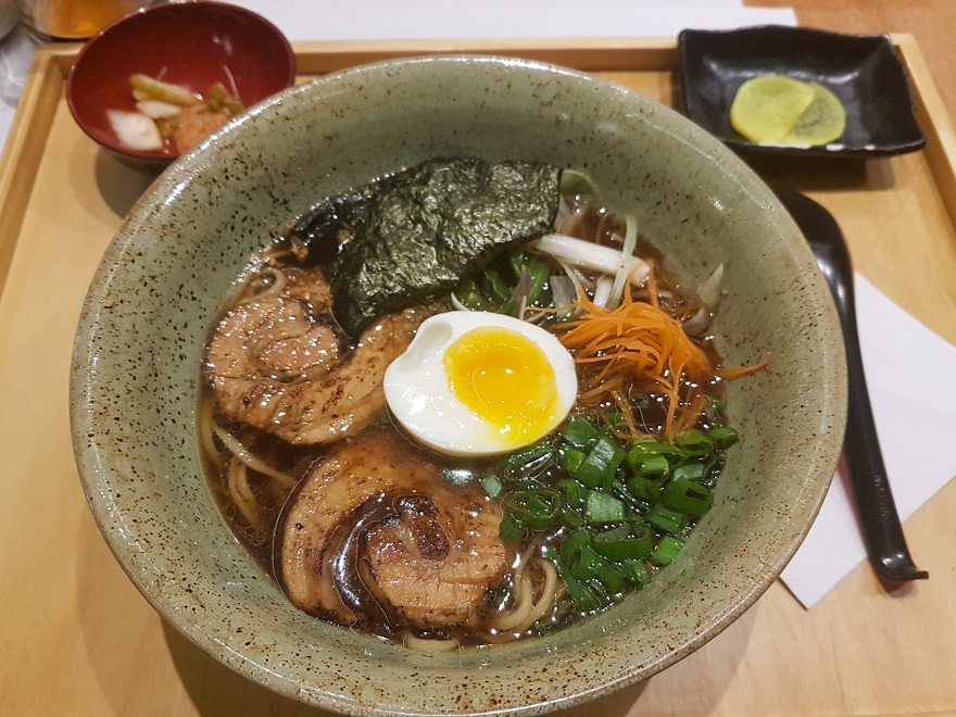 En la visita pedí Gyozas (empanaditas de cerdo, repollo y verdeo, al vapor y selladas a la sartén), Ramen Shoyu (fideos ramen en caldo de pollo y soja, ajitama, chashu, espinaca, verdeo, sésamo molido y alga nori) y dos cervezas, Asahi y Kirin. También probé Bibimbap que es un cuenco de arroz con vegetales variados, carne y huevo frito cocinado sobre plato de piedra.