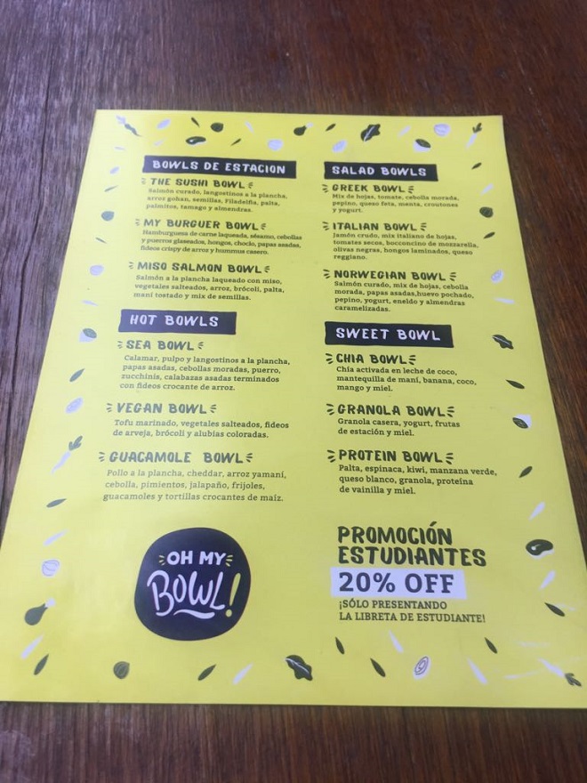 El primer local (y digo primer local porque Julio manifiesta la firme intención de expandir el formato) de Oh My Bowl está ubicado en Bv. Chacabuco 472 y el concepto tan sencillo como genial: